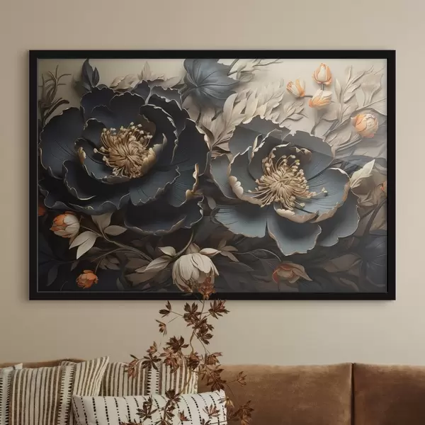 Poster Grote donkere bloemen f44378