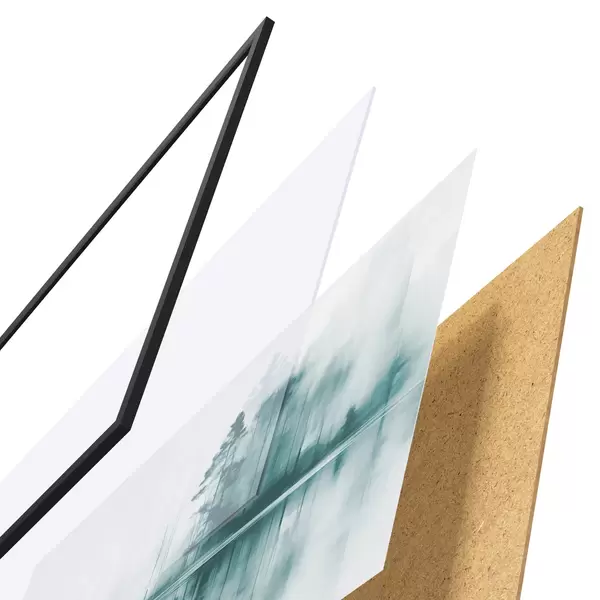 De poster bestaat uit een frame, plexiglas, geprinte afbeelding en spaanplaat achterkant. De poster kan meteen aan de muur worden gehangen dankzij de bevestigingen op de achterkant.