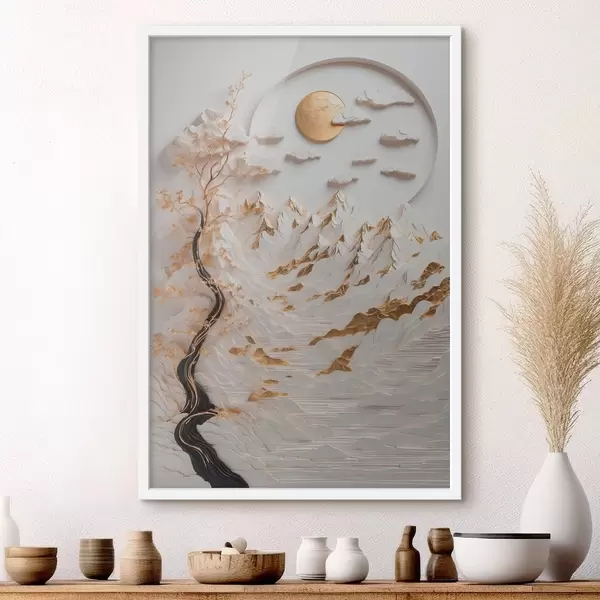 De poster bestaat uit een frame, plexiglas, geprinte afbeelding en spaanplaat achterkant. De poster kan meteen aan de muur worden gehangen dankzij de bevestigingen op de achterkant.