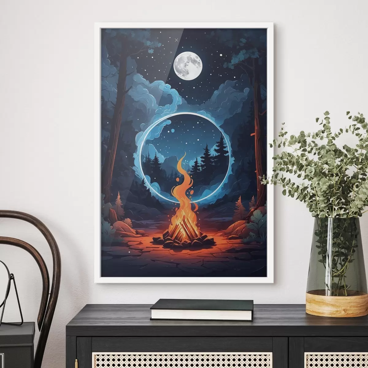 Poster Vreugdevuur in nachtelijk bos Nr f44436