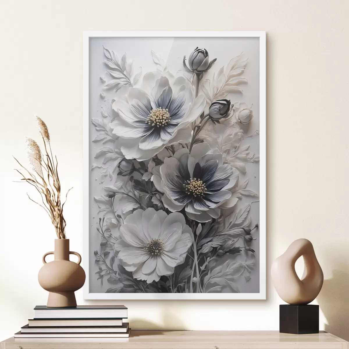 Poster Zwart-witte bloemen op witte achtergrond Nr f44446