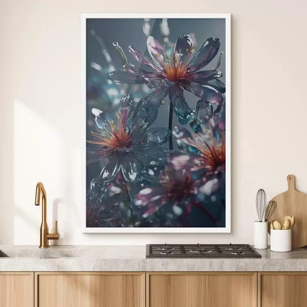 Poster Transparante bloemen op wazige achtergrond Nr f44469