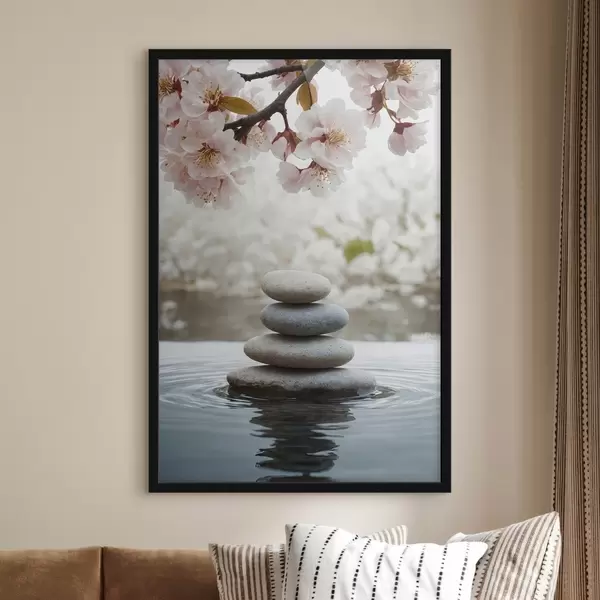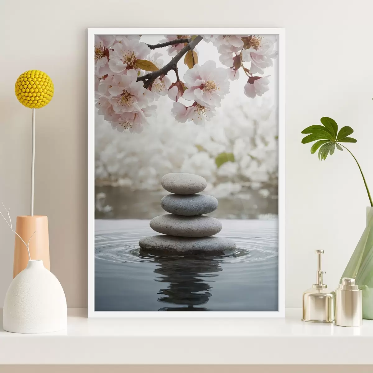 Poster Stenen in water op wazige achtergrond Nr f44476