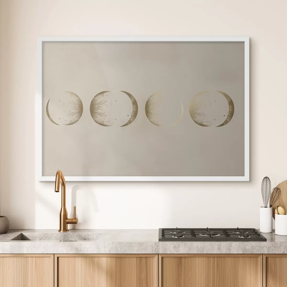 De poster bestaat uit een frame, plexiglas, geprinte afbeelding en spaanplaat achterkant. De poster kan meteen aan de muur worden gehangen dankzij de bevestigingen op de achterkant.