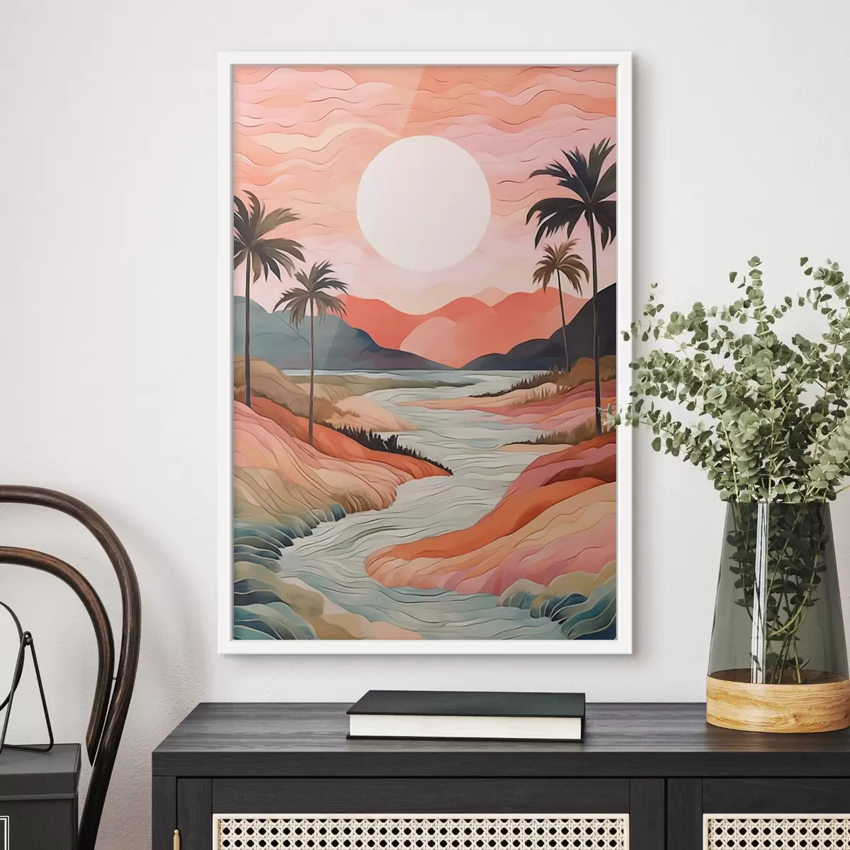 Je kunt het schilderij ophangen aan schroeven. Hiervoor leveren we bevestigingen bij onze foto's, zodat je de foto gemakkelijk kunt ophangen.