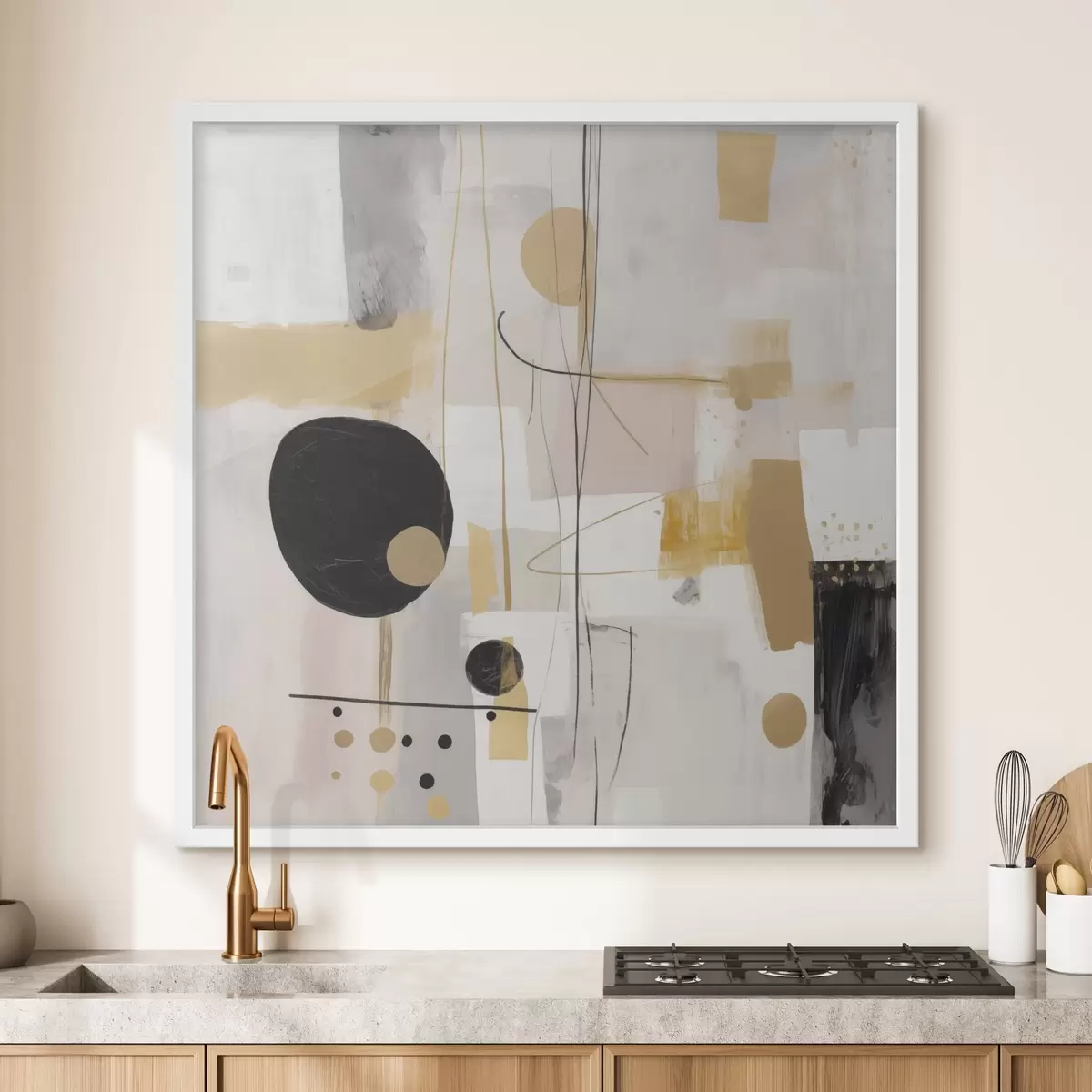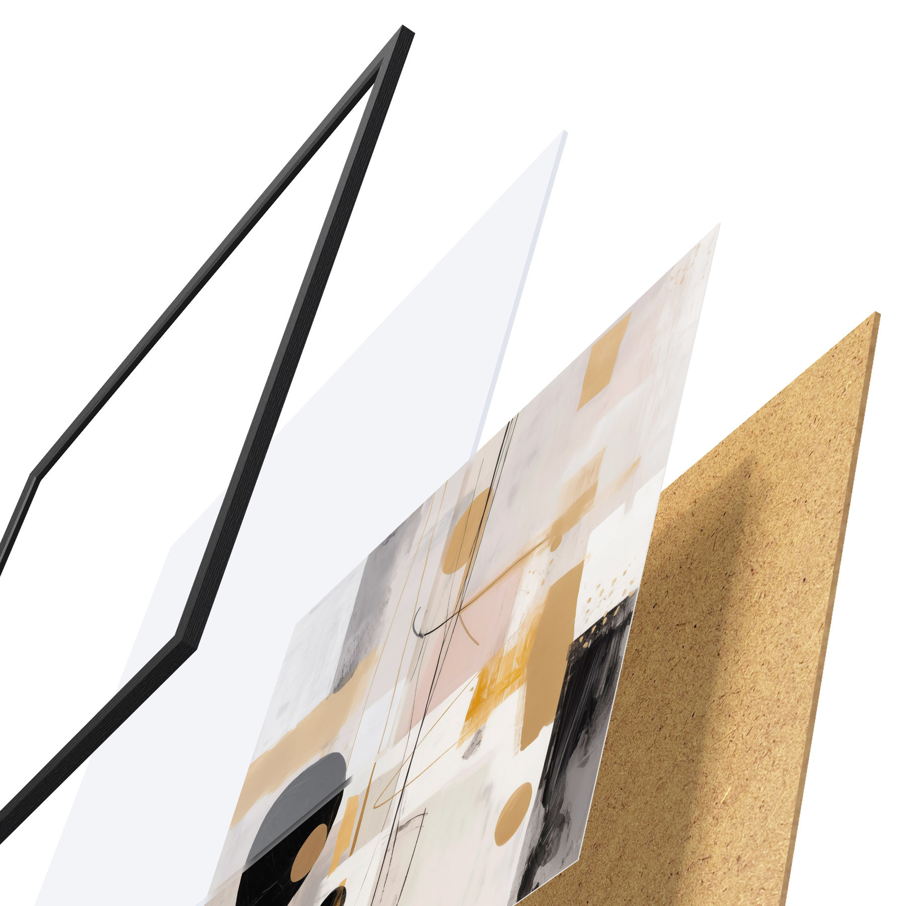De poster bestaat uit een frame, plexiglas, geprinte afbeelding en spaanplaat achterkant. De poster kan meteen aan de muur worden gehangen dankzij de bevestigingen op de achterkant.