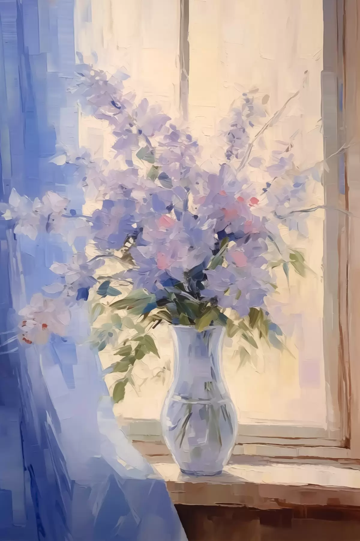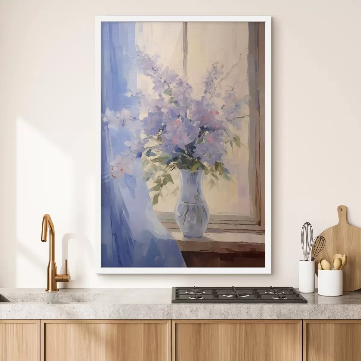 Poster Delicate bloemen in een vaas bij het raam Nr f44653