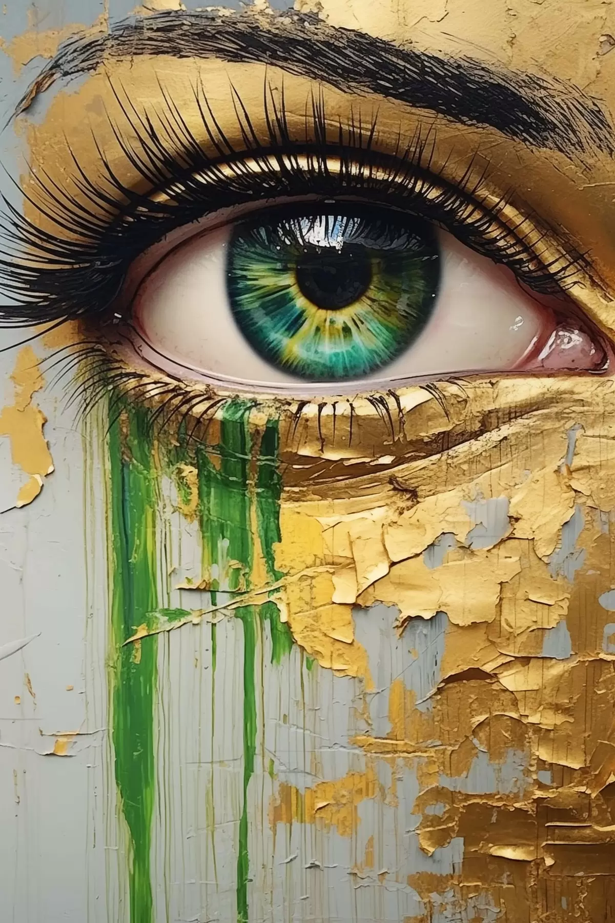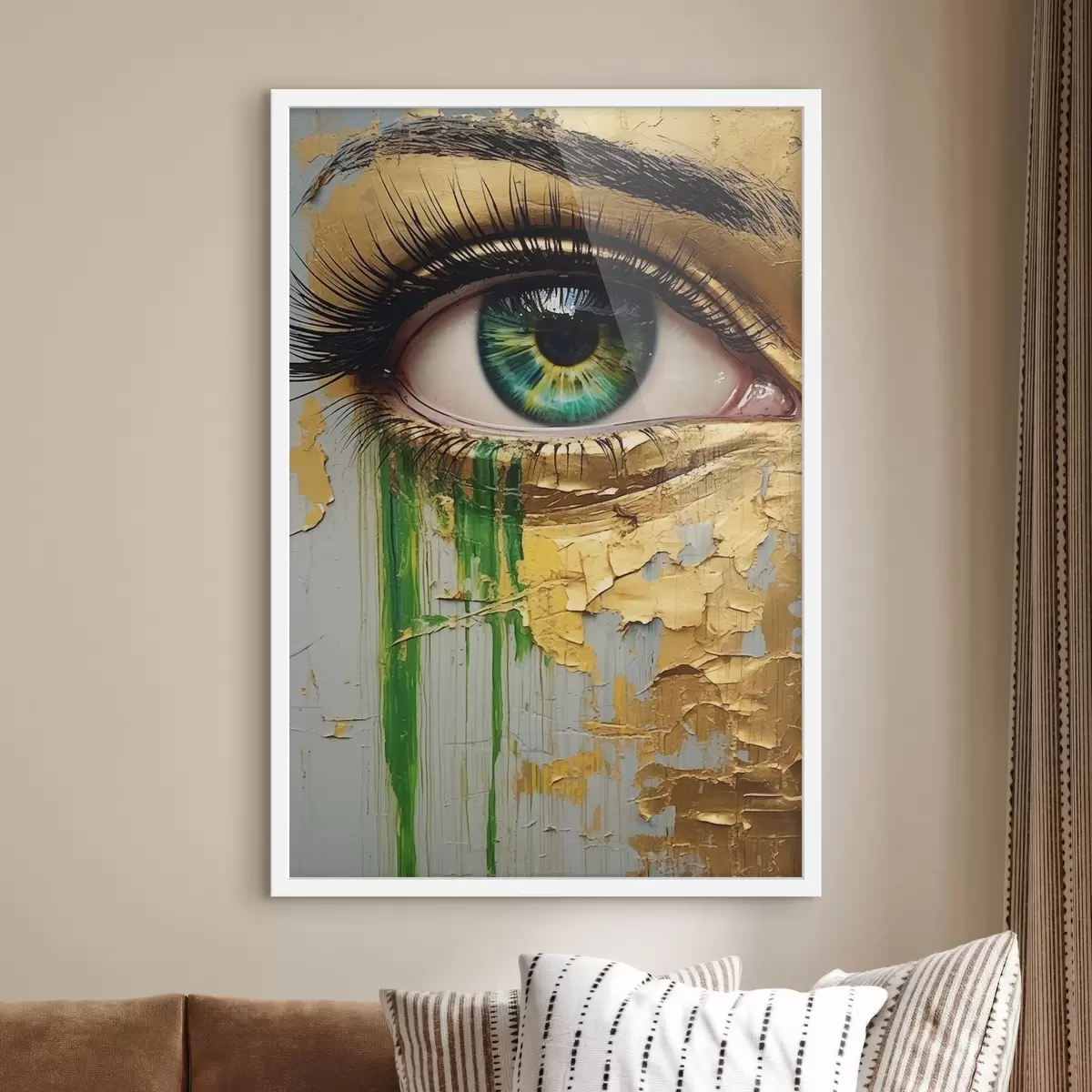 Poster Groen oog op de achtergrond van gebarsten verf Nr f44690