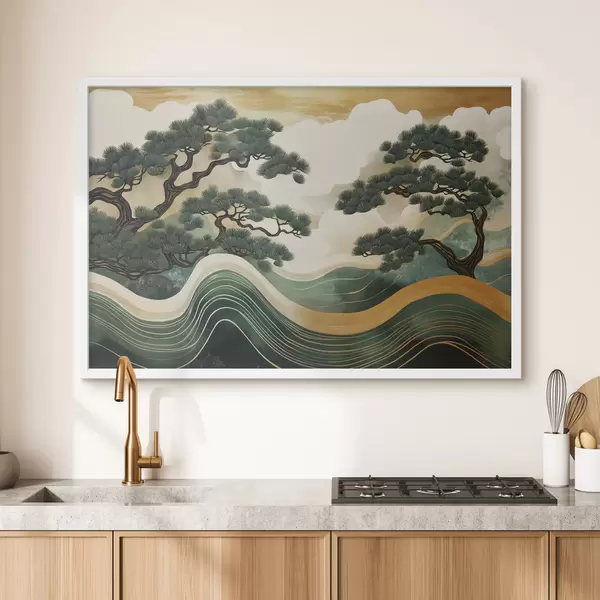 Poster Abstracte landschappen met pijnbomen, Chinese stijl Nr f44720