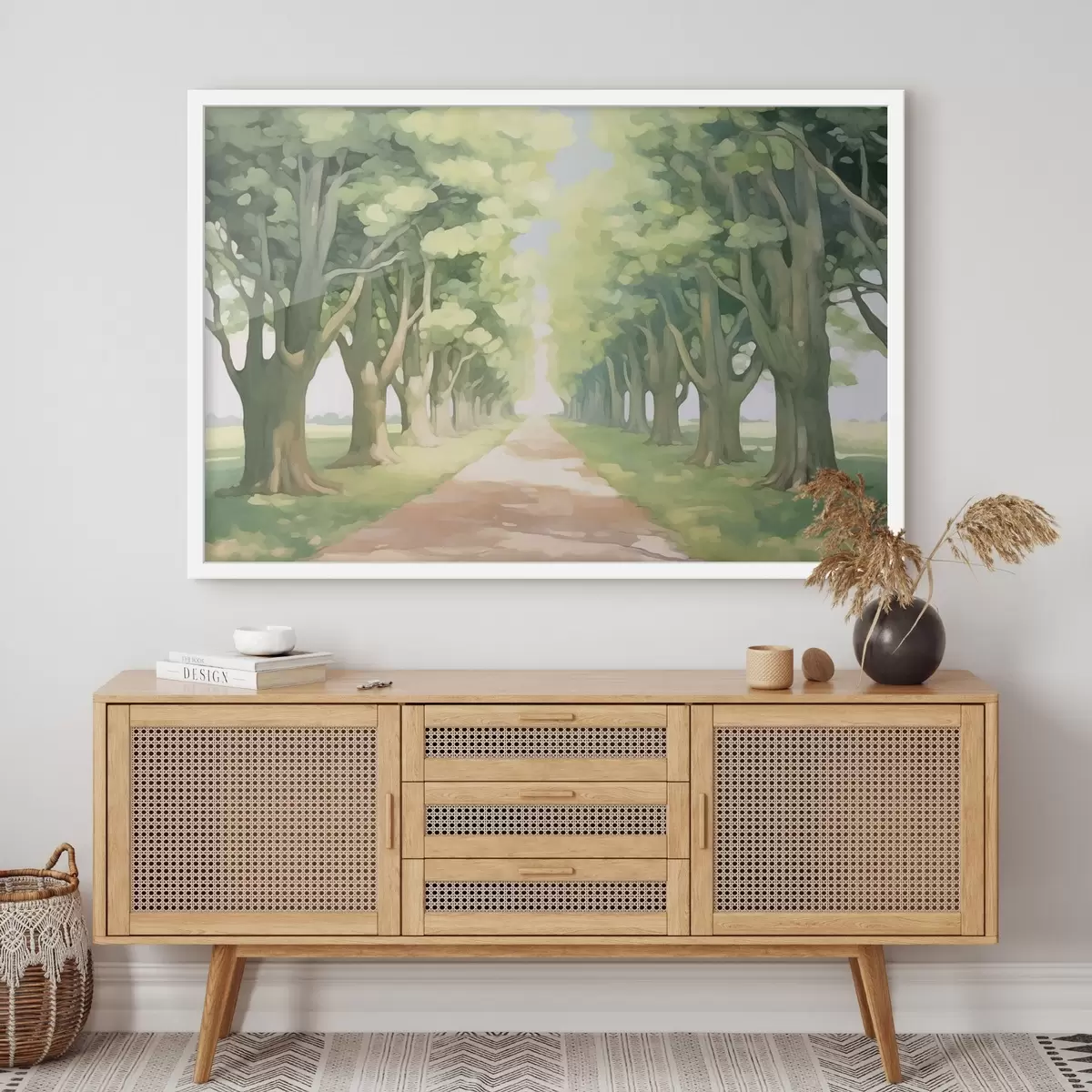 Je kunt het schilderij ophangen aan schroeven. Hiervoor leveren we bevestigingen bij onze foto's, zodat je de foto gemakkelijk kunt ophangen.