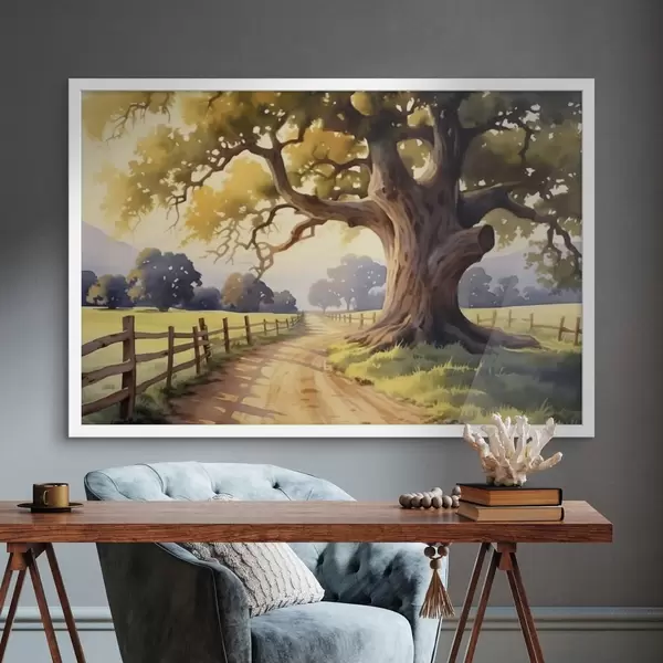 Je kunt het schilderij ophangen aan schroeven. Hiervoor leveren we bevestigingen bij onze foto's, zodat je de foto gemakkelijk kunt ophangen.