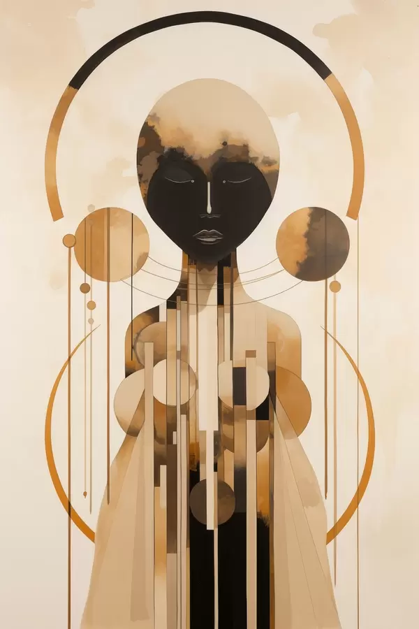 Poster Figuur met cirkels in beige en bruin palet Nr f44747