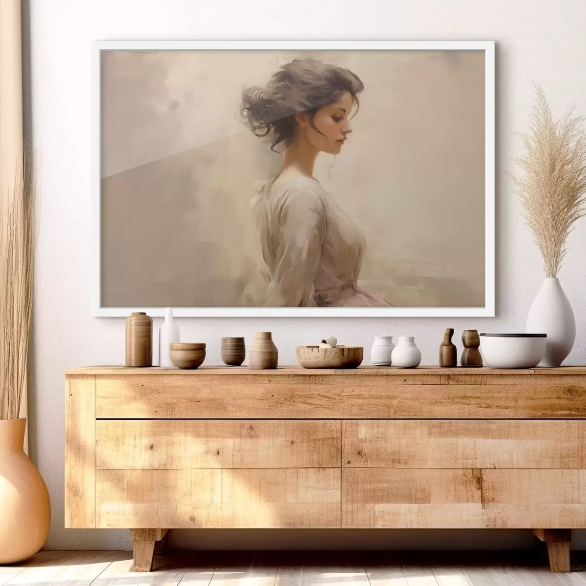 Poster Zacht vrouwelijk figuur op een lichte achtergrond Nr f44752