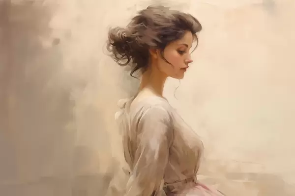 Poster Zacht vrouwelijk figuur op een lichte achtergrond Nr f44752