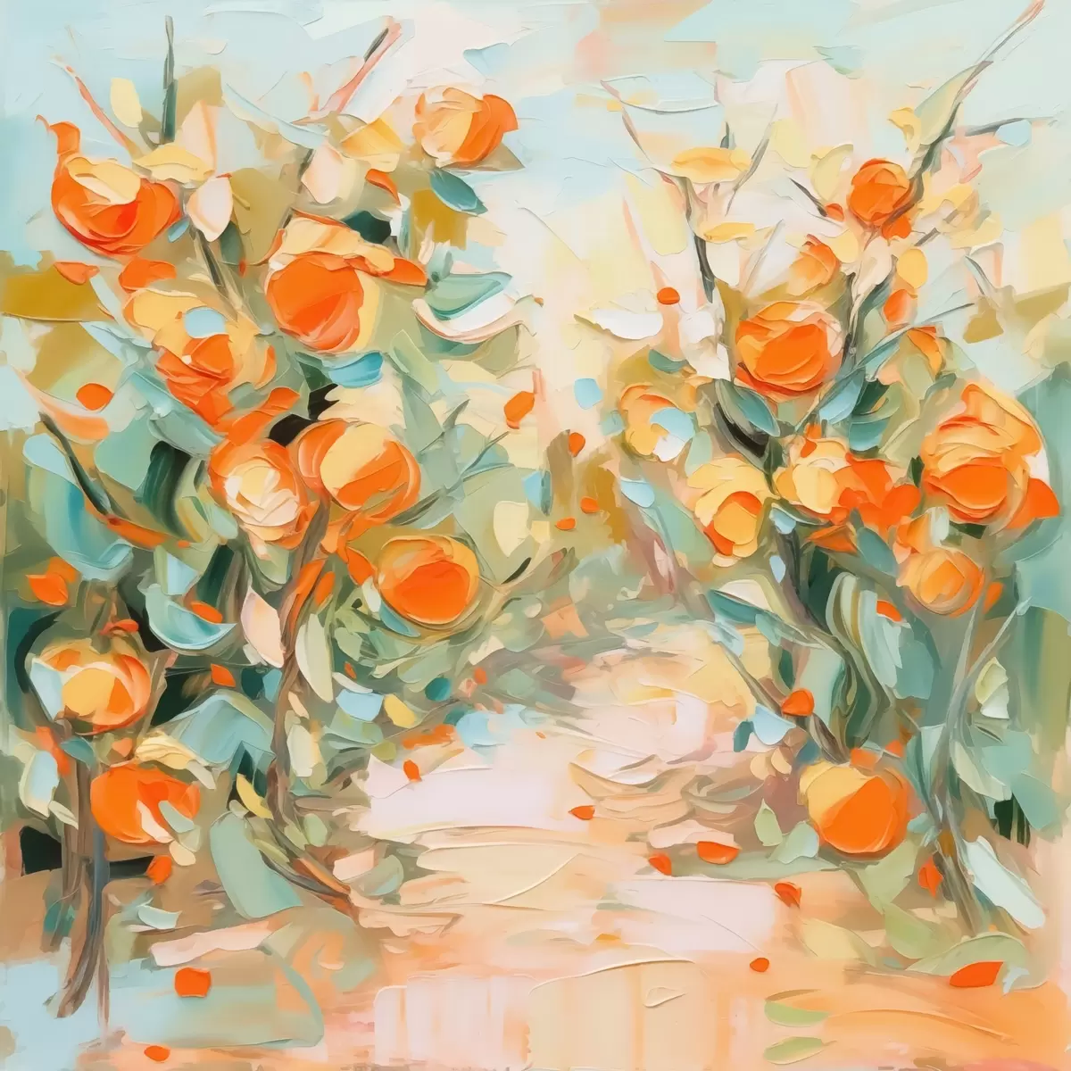 Poster Abstract sinaasappelboomgaard imitatieschilderij Nr f44772