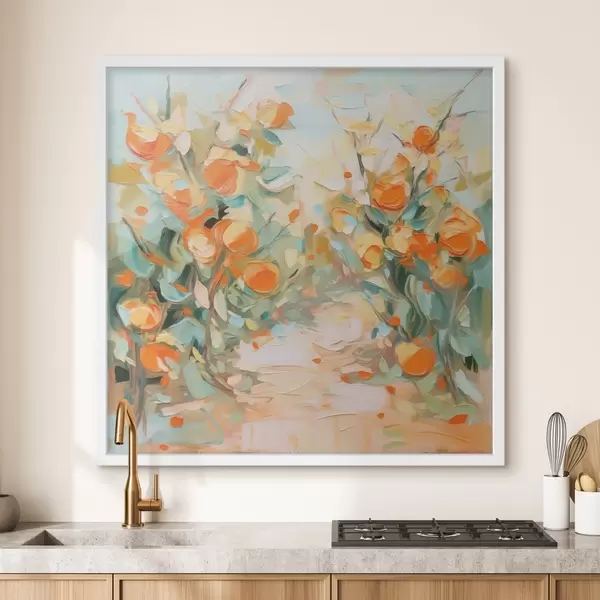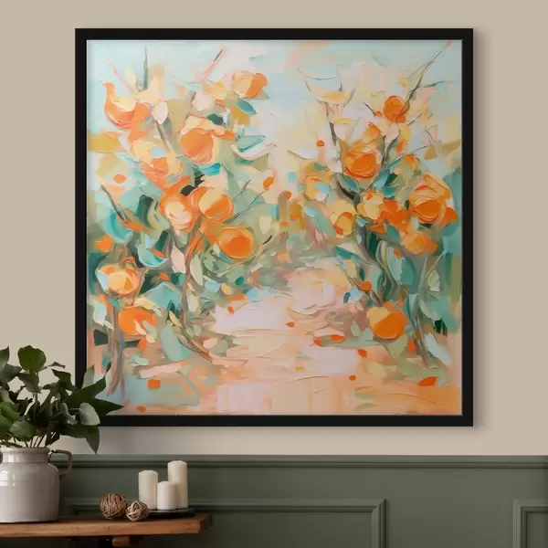 Poster Abstract sinaasappelboomgaard imitatieschilderij f44772