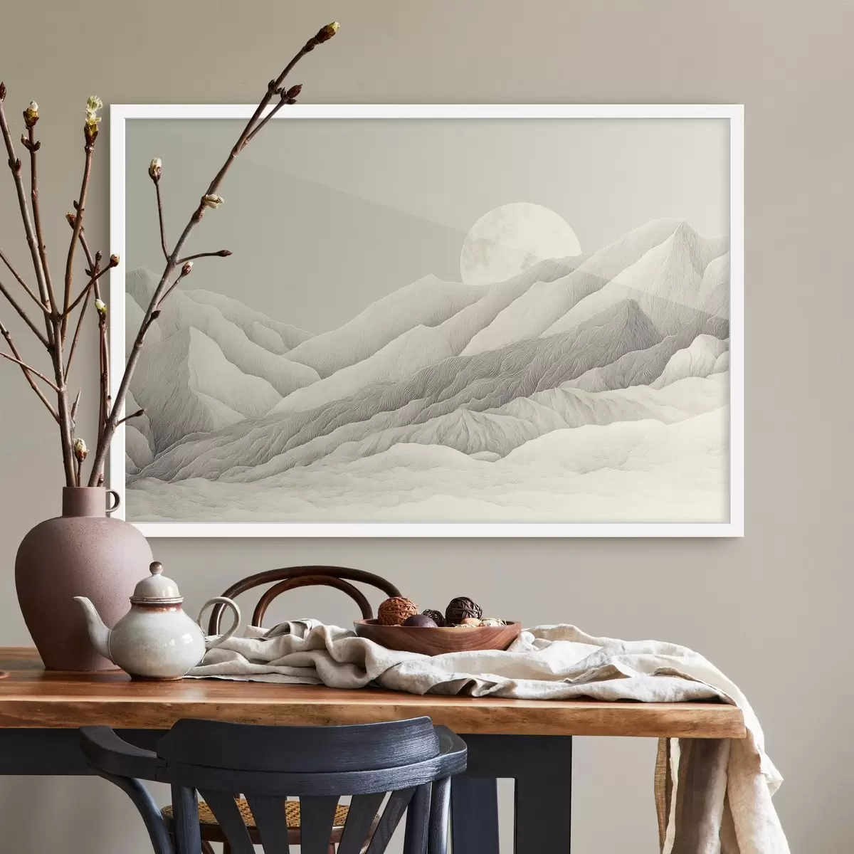 Poster Bergen met maan, gedetailleerde tekening Nr f44788