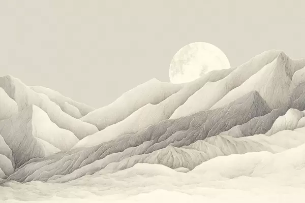 Poster Bergen met maan, gedetailleerde tekening Nr f44788