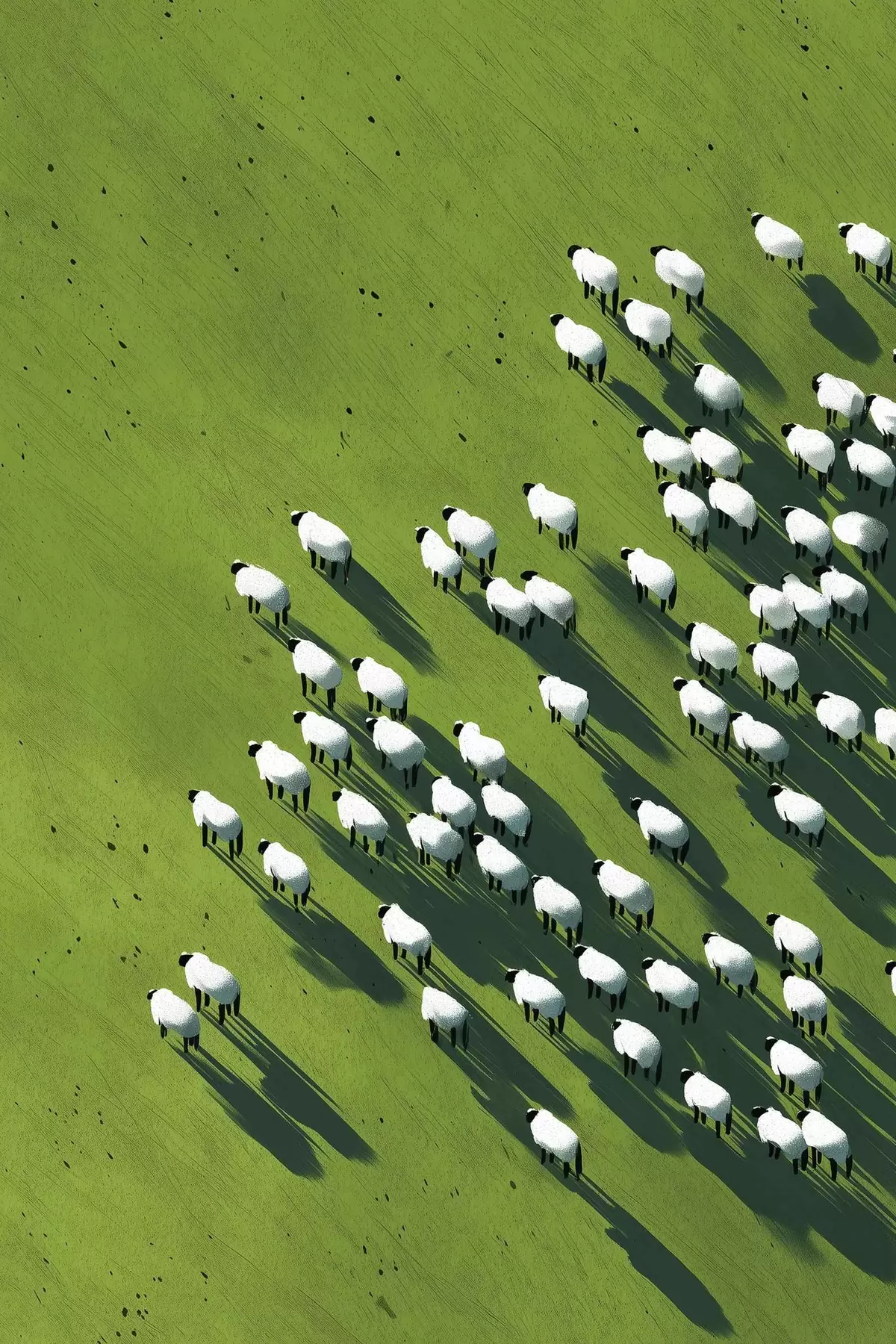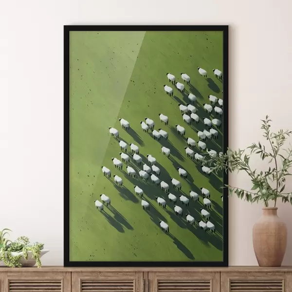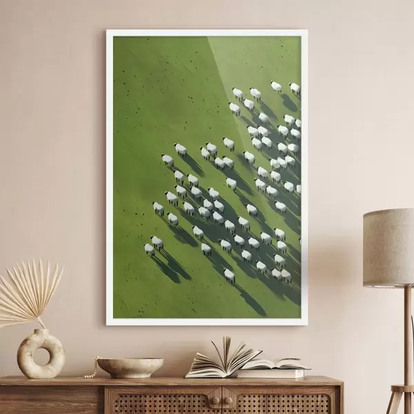 Poster Groen veld met een kudde schapen, abstractie, luchtfoto Nr f44793
