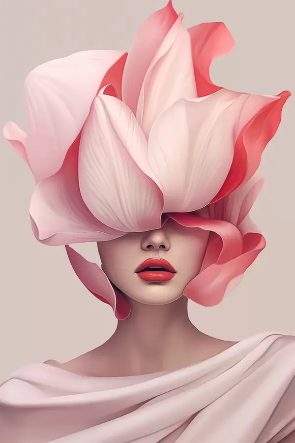 Poster Vrouwenportret met grote bloemblaadjes Nr f44812