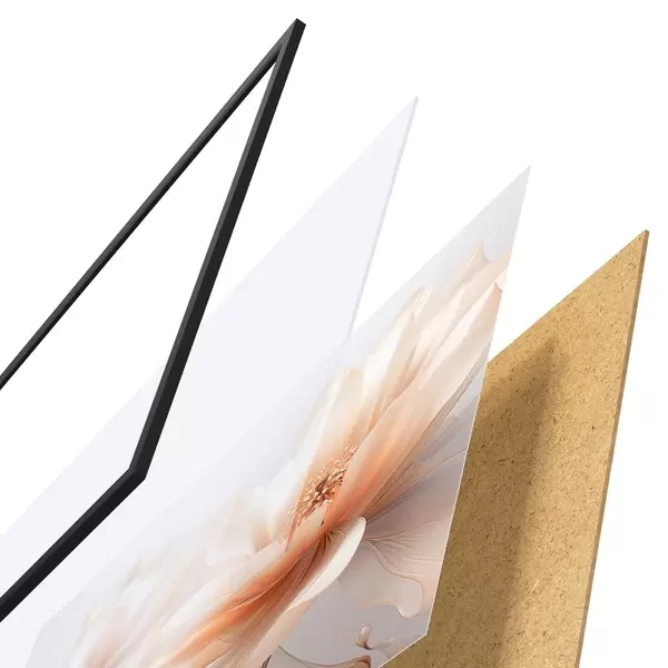 De poster bestaat uit een frame, plexiglas, geprinte afbeelding en spaanplaat achterkant. De poster kan meteen aan de muur worden gehangen dankzij de bevestigingen op de achterkant.