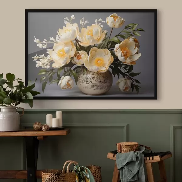 Poster Delicate bloemen met gele kern in een vaas met patroon Nr f44847