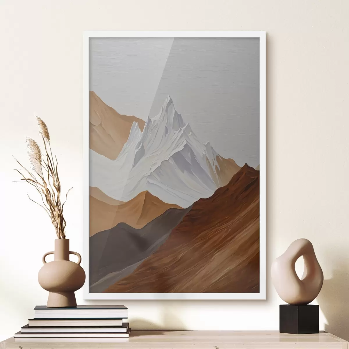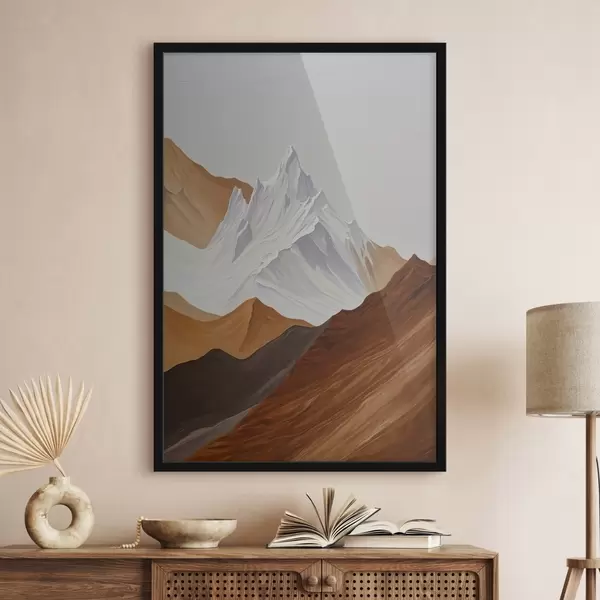 Poster Geometrisch berglandschap in bruin- en wittinten Nr f44896