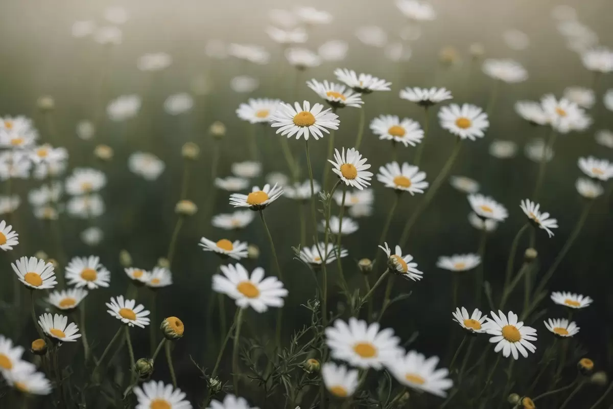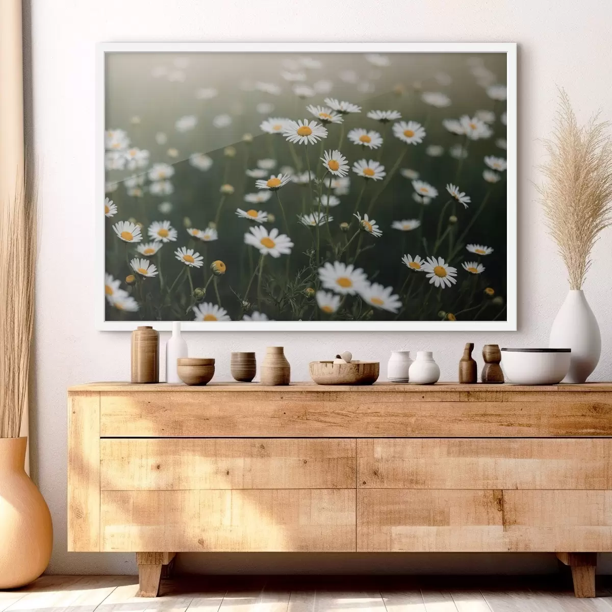 Poster Madeliefjesveld met onscherpe groene achtergrond Nr f44898