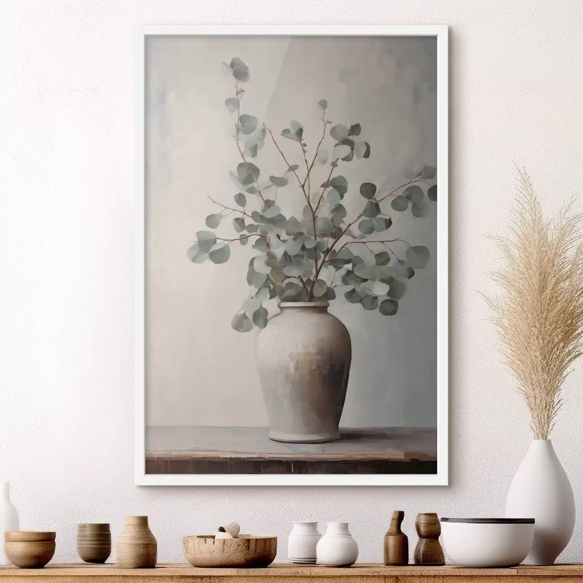 Poster Eucalyptustakken in een vaas van klei Nr f44906