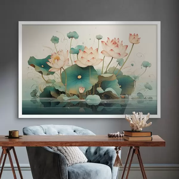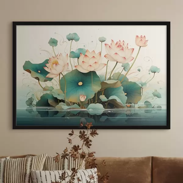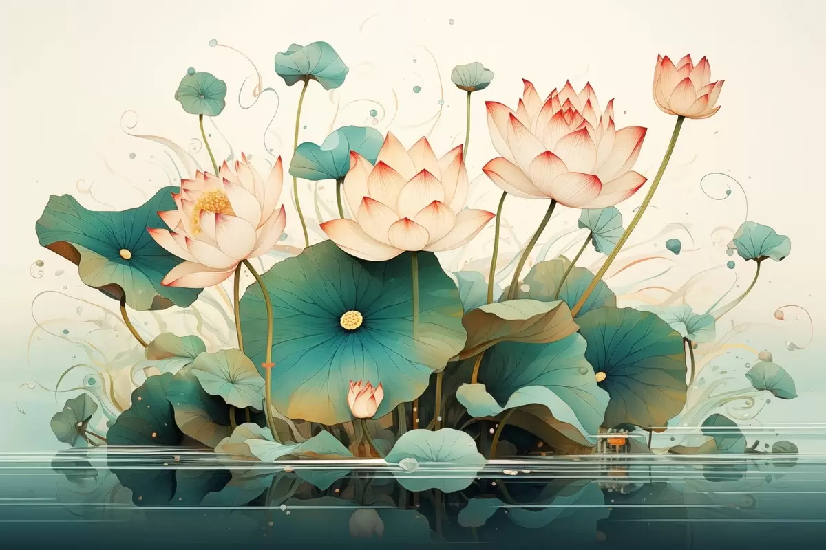 Poster Lotussen met grote bladeren in illustratiestijl Nr f44939