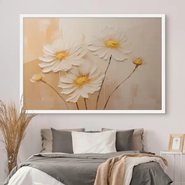Poster Abstracte bloemen op een oranje achtergrond in olieverfstijl Nr f44945