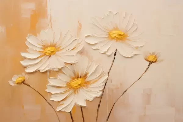 Poster Abstracte bloemen op een oranje achtergrond in olieverfstijl f44945