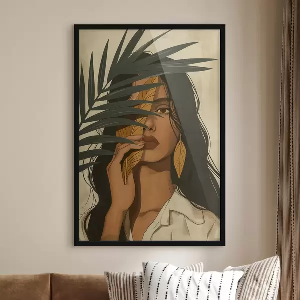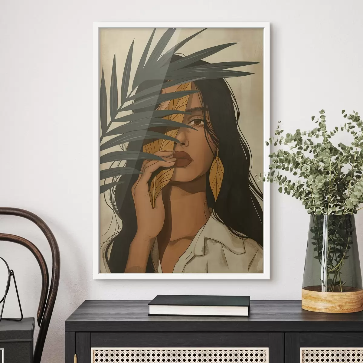 Poster Gezicht verborgen achter bladeren Nr f44960