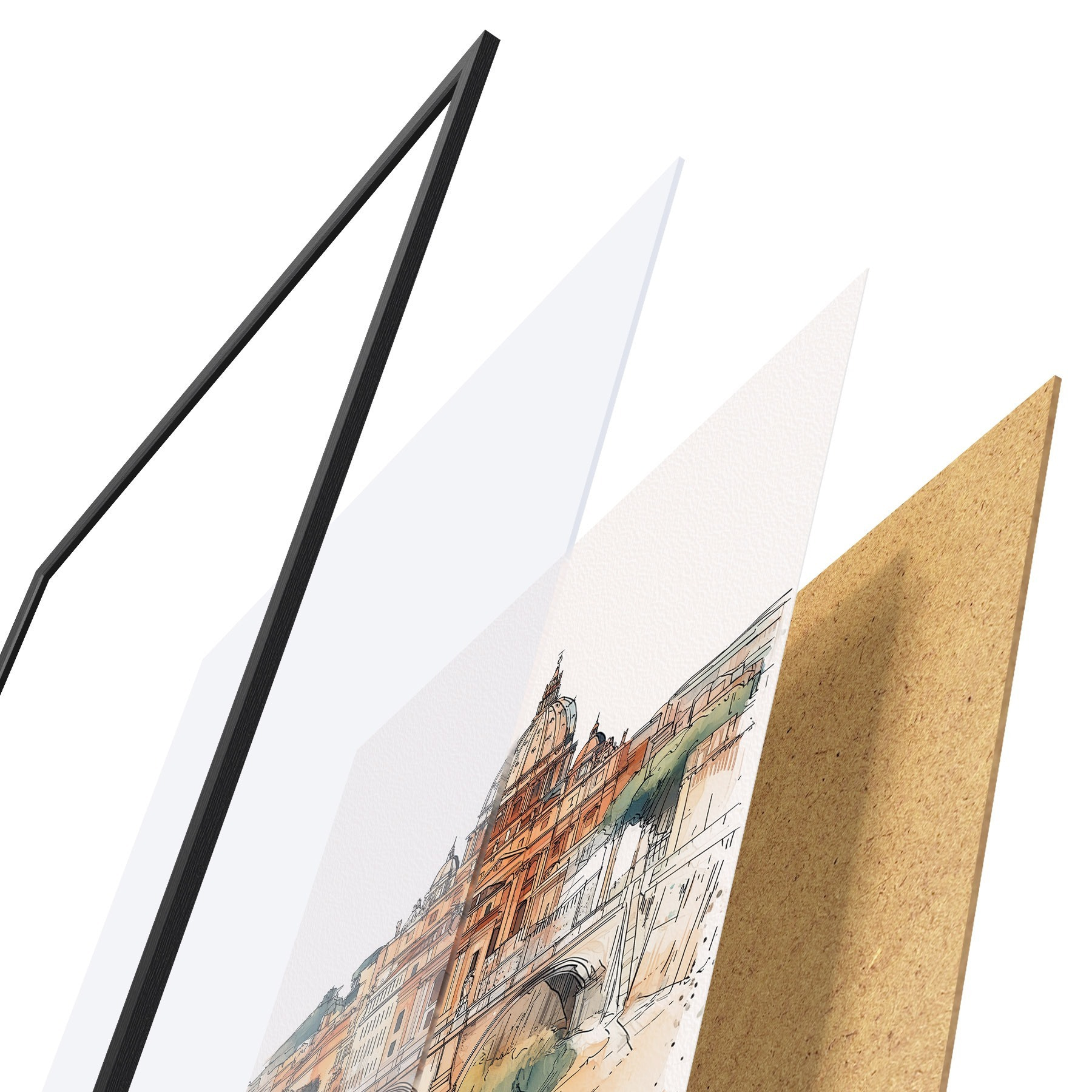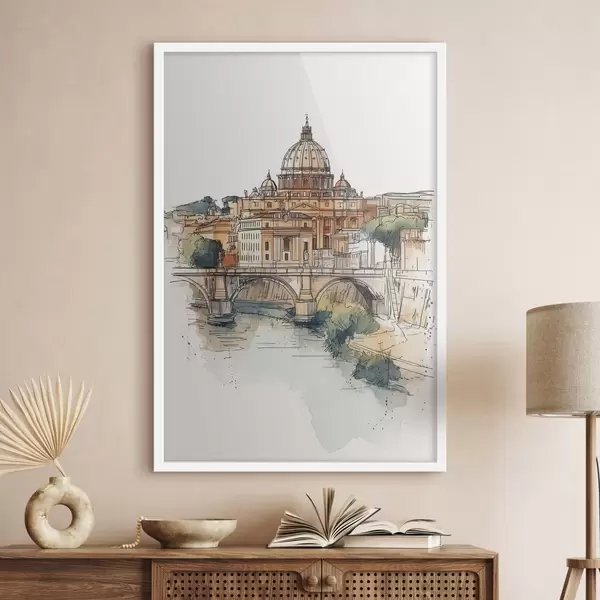 Poster Aquarel Rome stad, schets tekening, architectuur Nr f44983