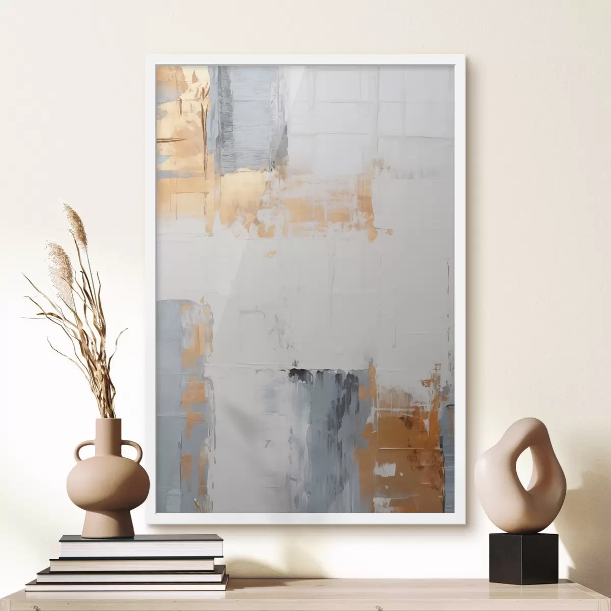 De poster bestaat uit een frame, plexiglas, geprinte afbeelding en spaanplaat achterkant. De poster kan meteen aan de muur worden gehangen dankzij de bevestigingen op de achterkant.