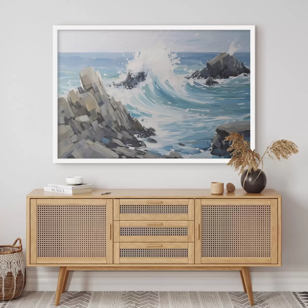 Je kunt het schilderij ophangen aan schroeven. Hiervoor leveren we bevestigingen bij onze foto's, zodat je de foto gemakkelijk kunt ophangen.