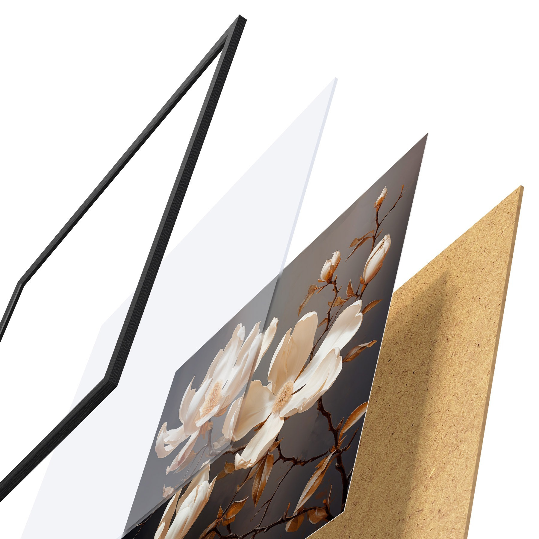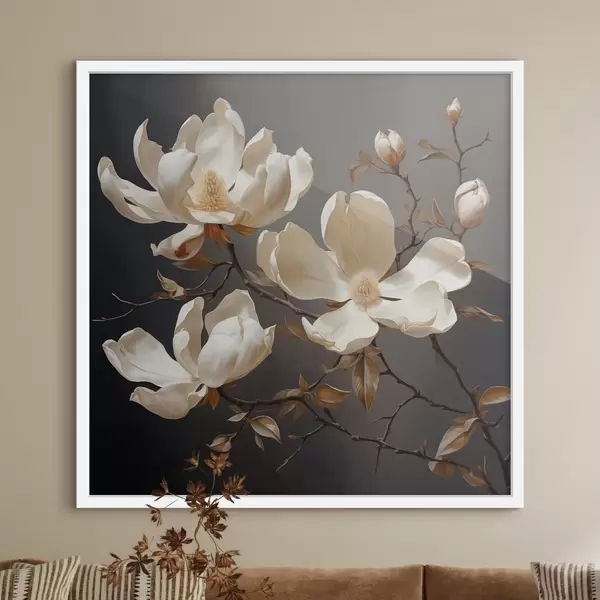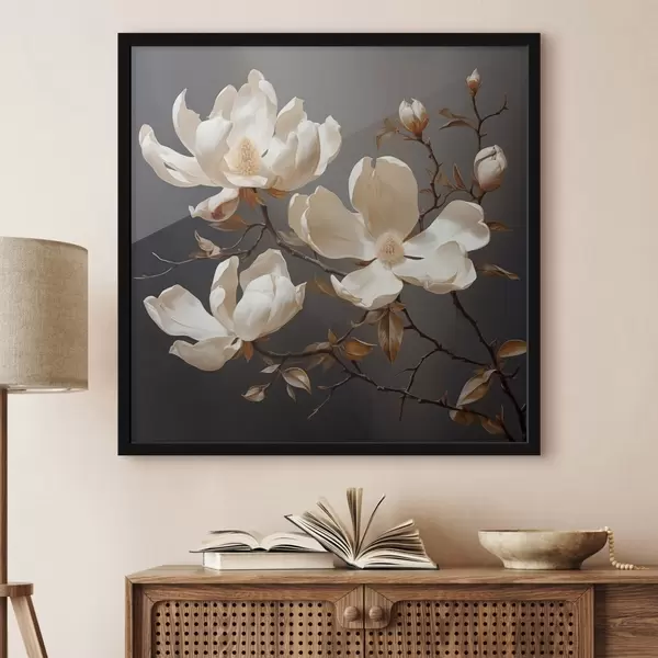 Poster Witte magnolia's op donkere achtergrond in schilderstijl Nr f45038
