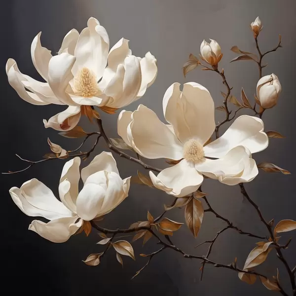 Poster Witte magnolia's op donkere achtergrond in schilderstijl Nr f45038
