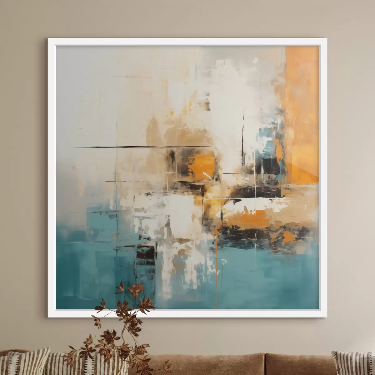 Poster Hedendaagse kunst met textuurpenseelstreken en heldere accenten Nr f45041