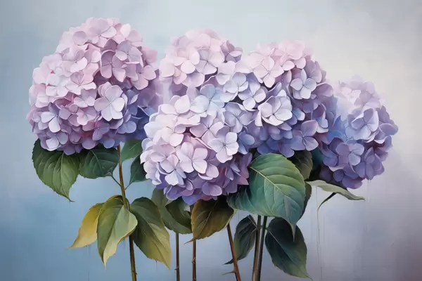 Poster Roze en lila hortensia's in schilderachtige stijl Nr f45055