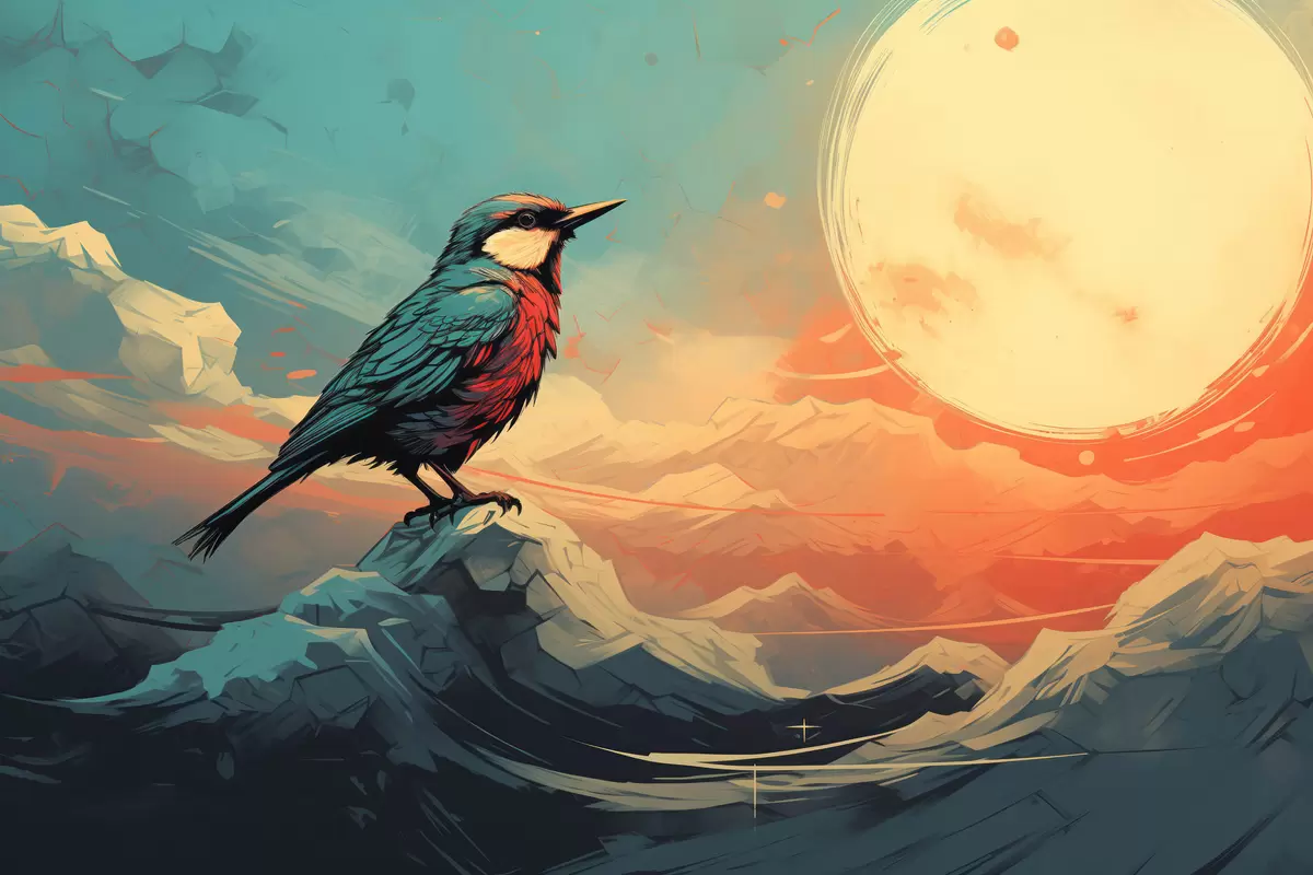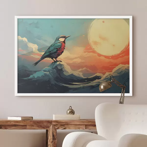 Poster Artistiek landschap met vogel en levendige lucht Nr f45060