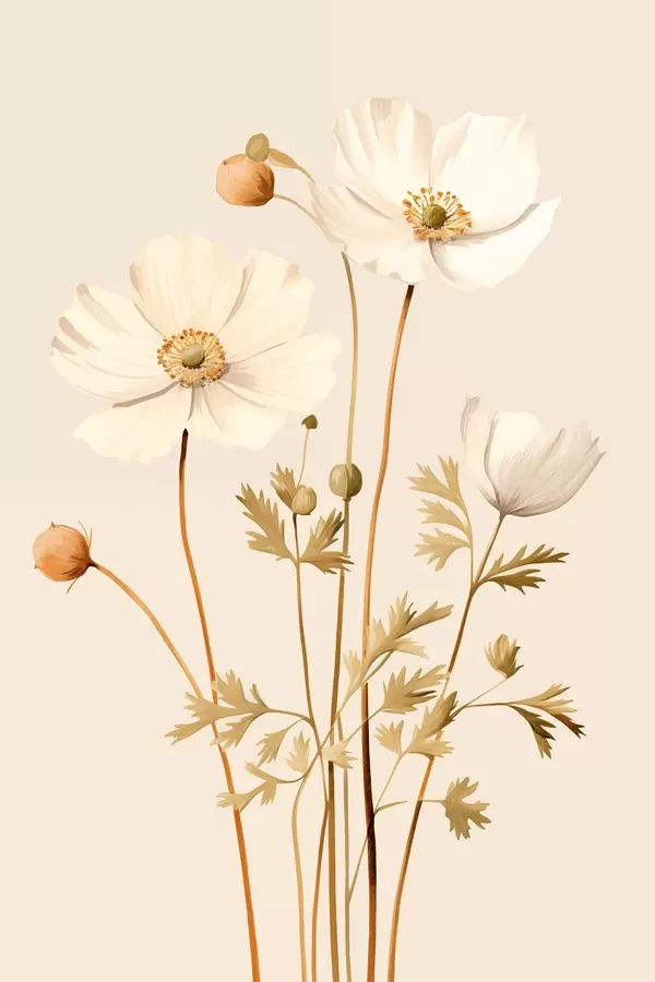 Poster bloem, botanisch, beige achtergrond, zachte tinten, bloemblaadjes, plant, vintage, minimaal Nr f45099