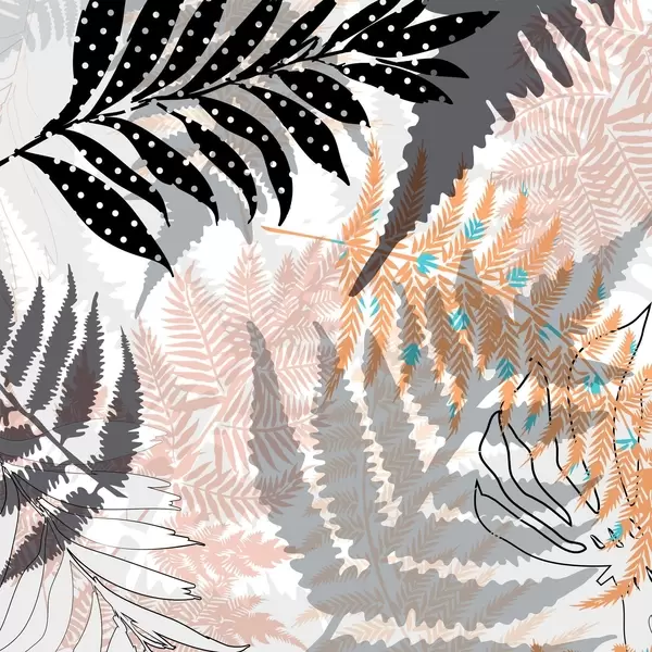 Poster tropische bladeren, grafisch, textuur, beige en zwart, silhouet, eigentijds, plant f45103