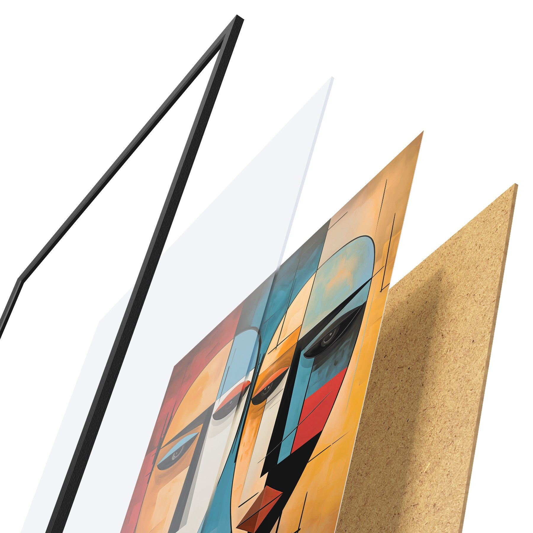 De poster bestaat uit een frame, plexiglas, geprinte afbeelding en spaanplaat achterkant. De poster kan meteen aan de muur worden gehangen dankzij de bevestigingen op de achterkant.