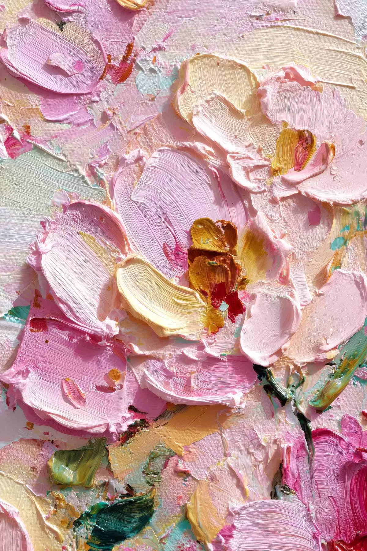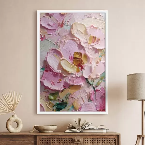 Poster Roze magnolia's: structuurschilderij met dimensionale streken f45249