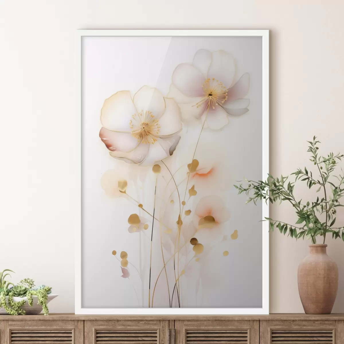 Poster Roze bloemen in een lichte stijl Nr f45259