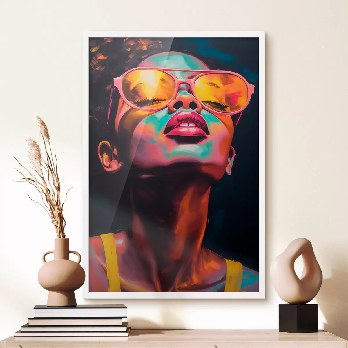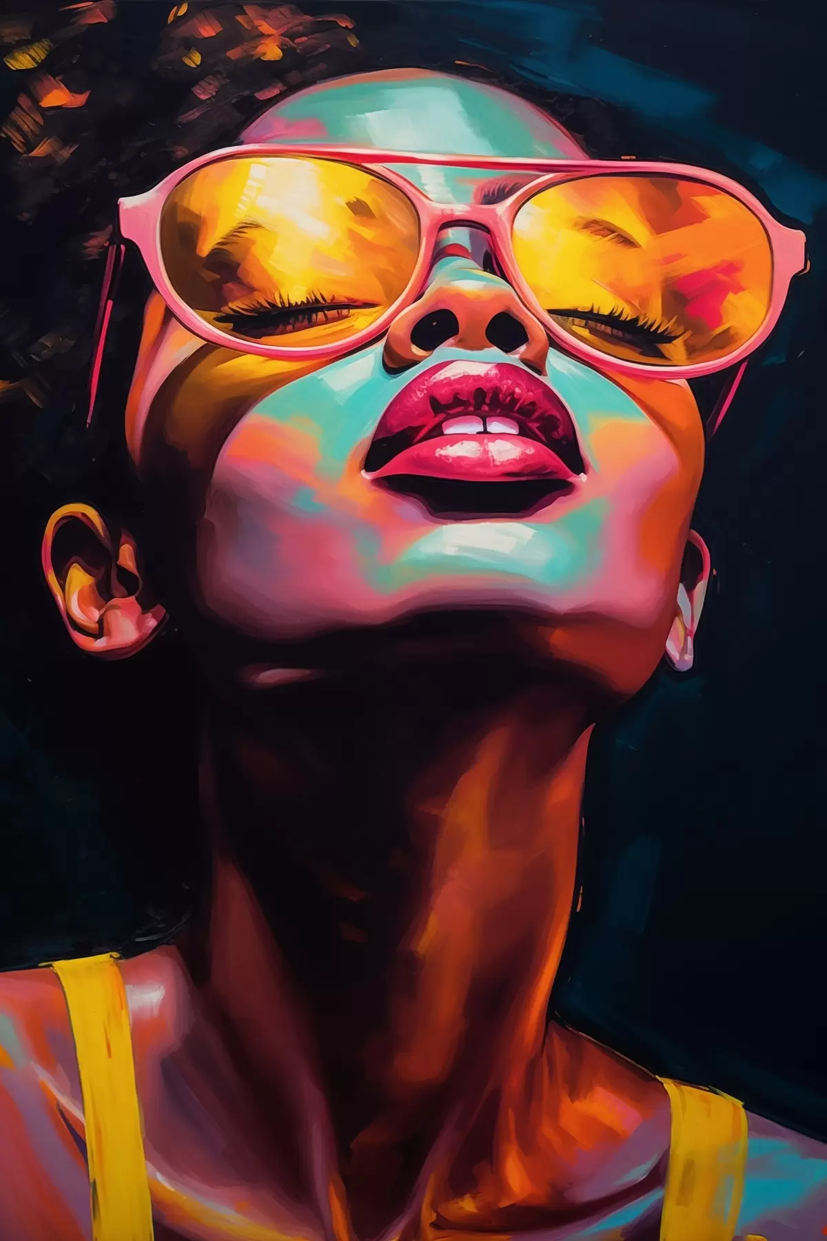 Poster Vrouw met gele bril f45311