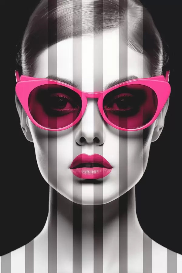 Poster Vrouw met roze bril met zwarte en witte strepen Nr f45315