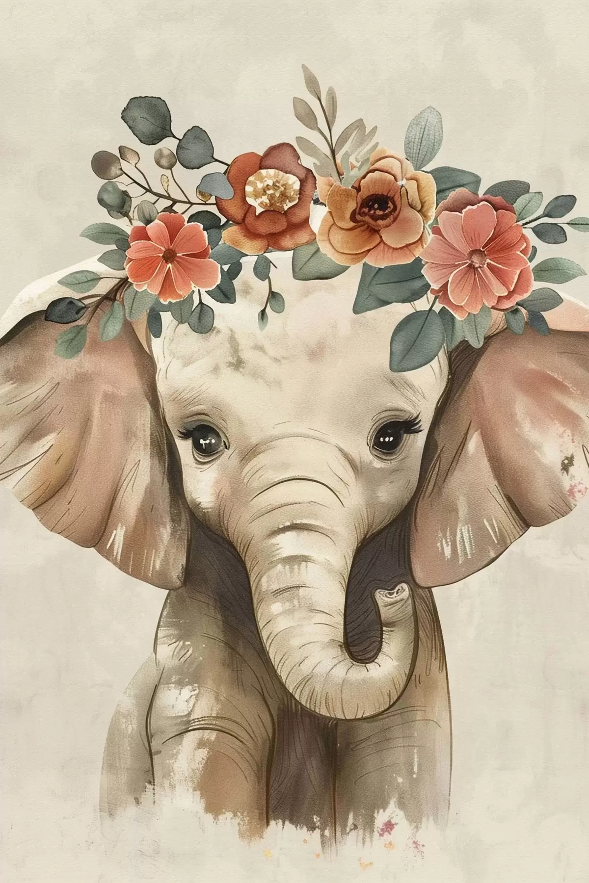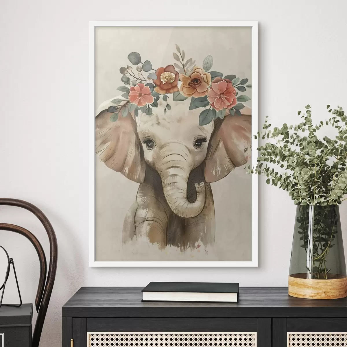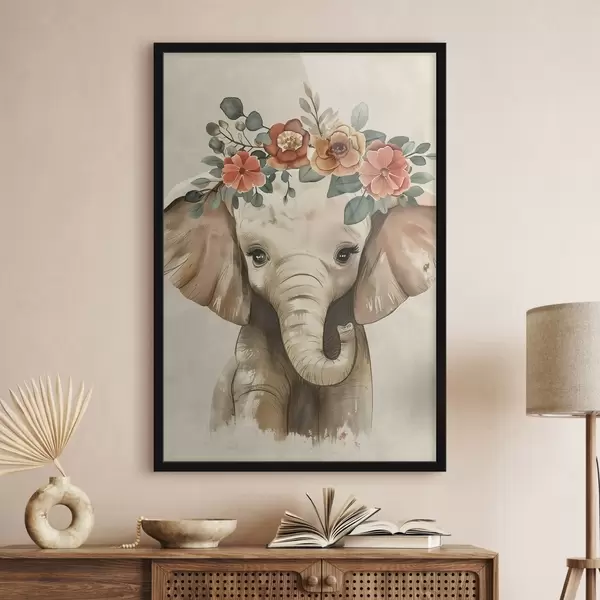 Poster Schattige aquarel olifant met bloemen Nr f45330