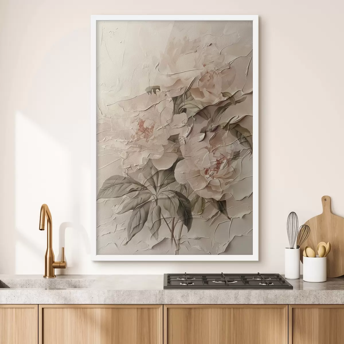 Poster Weelderig boeket pioenrozen in aquarelstijl op een lichte achtergrond Nr f45336